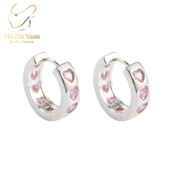 Sweet Pink Zirkoon Hart Oorbellen High-End Luxe Exquise Petite Hoepel Oor Clips Veelzijdige Mode Stijl Voor Vrouwen Cool
